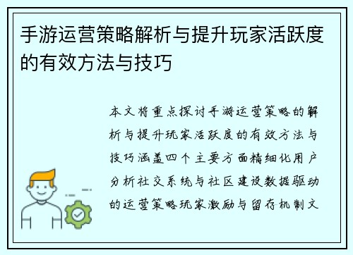 2025-11-29 09:37:38《德军总部全攻略:深入解析任务技巧与隐藏要素的全面指南》旨在为玩家提供一份详尽的游戏攻略,通过对游戏中各类任务的解析、技巧的传授以及隐藏要素的挖掘,帮助玩家全面掌握游戏的精髓。本篇文章从多个角度深入探讨了《德军总部》中的任务完成方法、战斗技巧、探索要素以及隐藏的彩蛋与奖励,通过对这些内容的详细分析,...