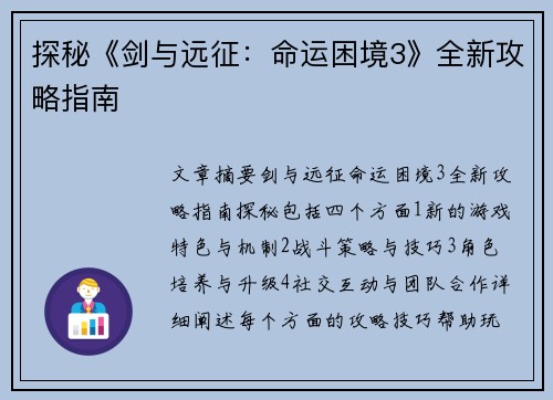 2025-12-04 09:39:45《地下城与勇士》是一款以冒险与战斗为核心的角色扮演游戏,在游戏中,玩家不仅要面对复杂的地下城挑战和强大的敌人,还需要通过提升与其他角色的关系,解锁更多的故事和能力。游戏的好感系统便是其中一个关键因素,玩家与NPC的关系密切程度会直接影响到游戏中的许多内容。本文将从四个方面详细分析如何提升地下城与勇士...